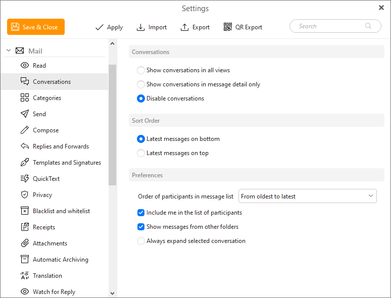 Accidentally moved a message to an incorrect folder? By popular demand, any Move action can now be undone via the pop-up notification in the message list or the Ctrl + Z keyboard shortcut.