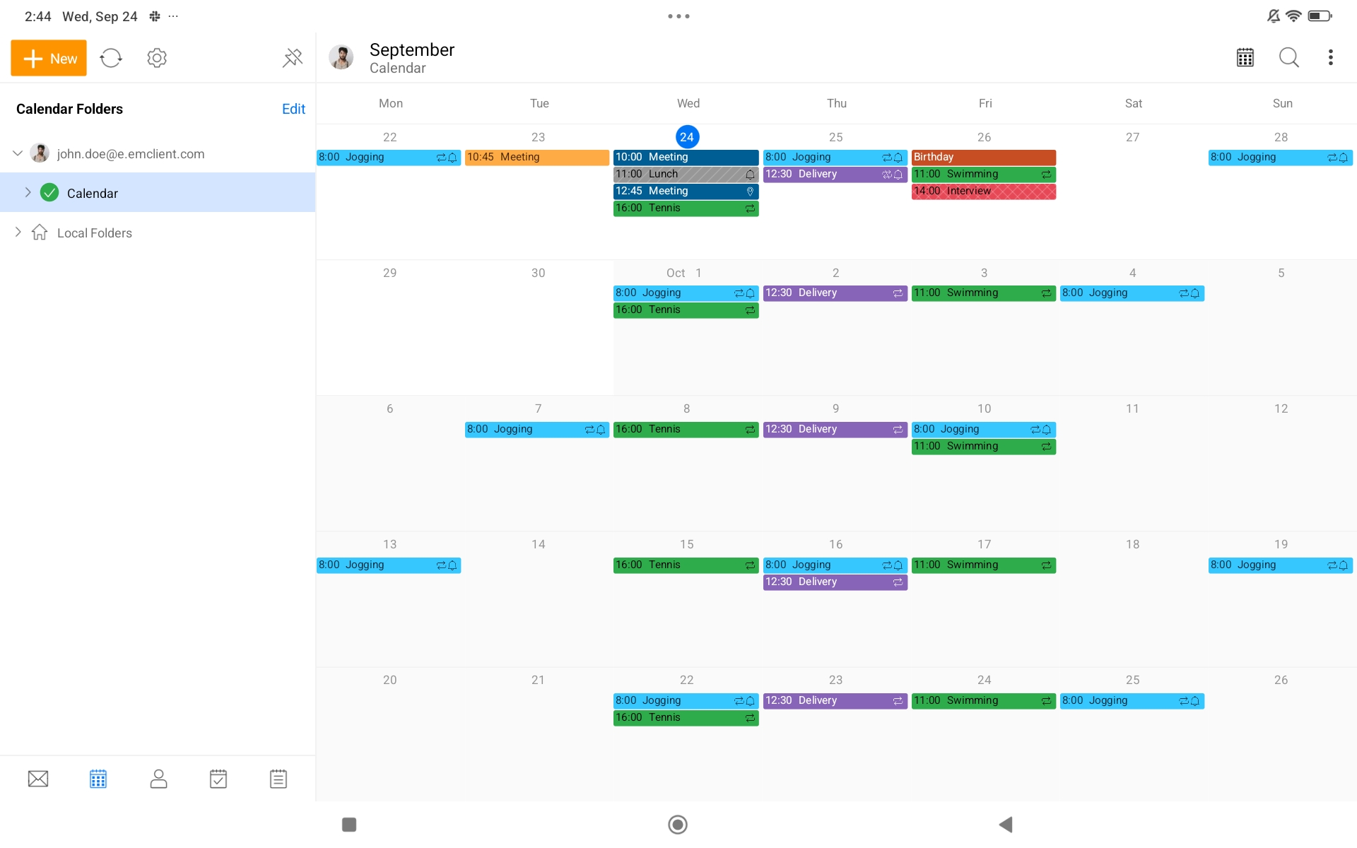 The eM Client mobile app now offers full support for both local and synchronized calendars, keeping your events and schedules at your fingertips wherever you are. You can accept meeting invitations straight from your messages, create new appointments, and explore your agenda in multiple layouts - including week, month, agenda, and a special Three-Day view for quick access to what’s ahead.