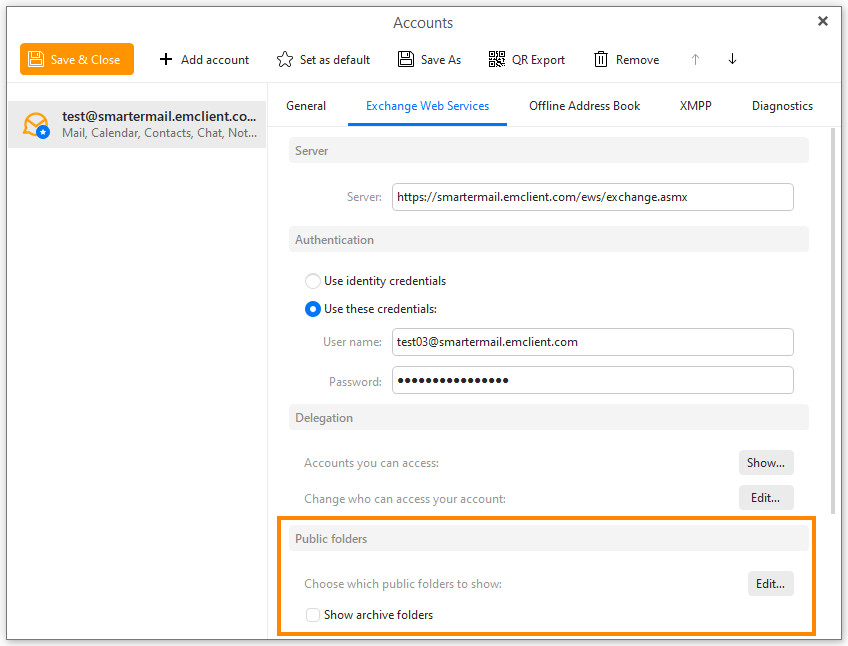 access SmarterMail accounts or public folders in the eM Client app. This is handy for team collaboration or when