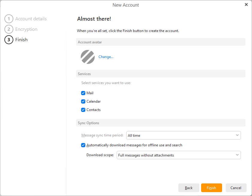 Congratulations! Click Finish and you're all set to start using eM Client connected to your Variomedia account.